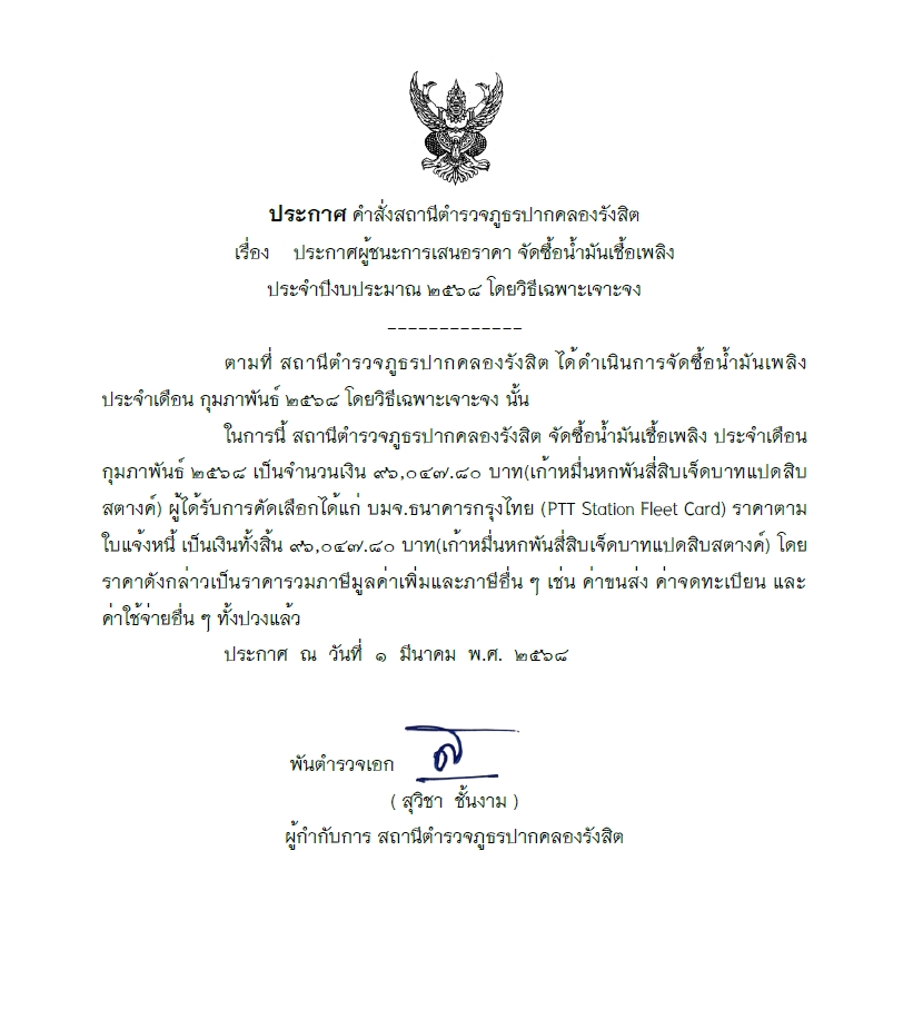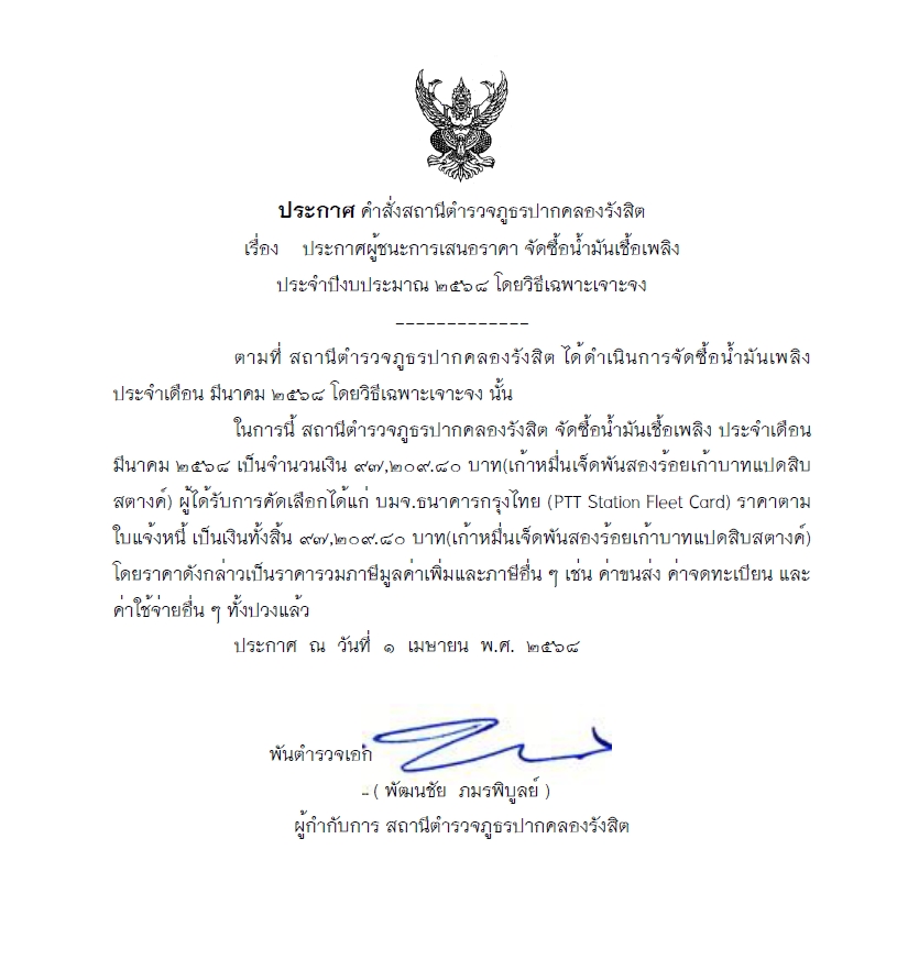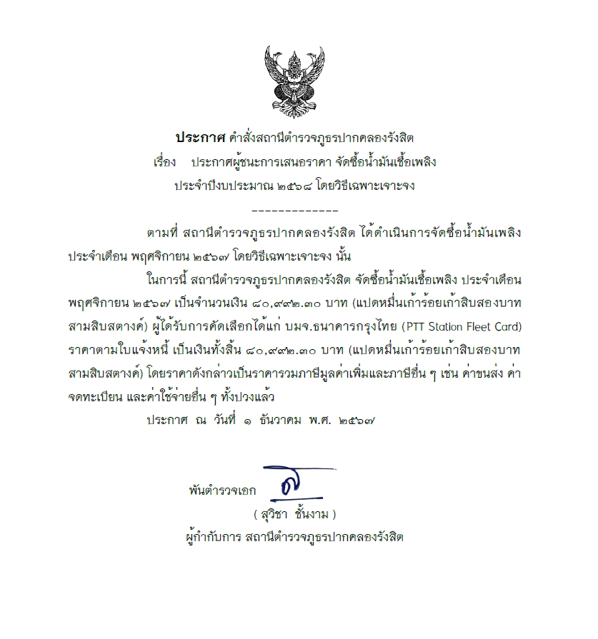 การจัดซื้อจัดจ้าง สภ.ปากคลองรังสิต