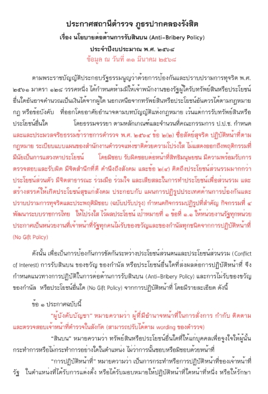 Home » ประกาศนโยบายต่อต้านการรับสินบน(Anti-Bribery Policy)