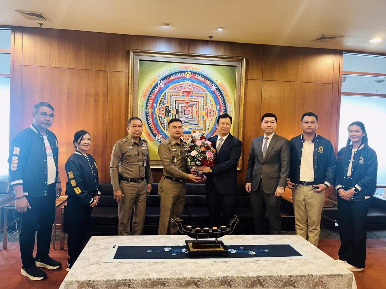 พ.ต.อ.สุวิชา ชั้นงาม รรท.ผกก. สภ.ปากคลองรังสิต ร่วมประชุมรับฟังความคิดเห็นปัญหาอาชญกรรม ข้อขัดข้อง รวมทั้งอุบัติเหตุทางถนนโดยรอบมหาวิทยาลัยรังสิต